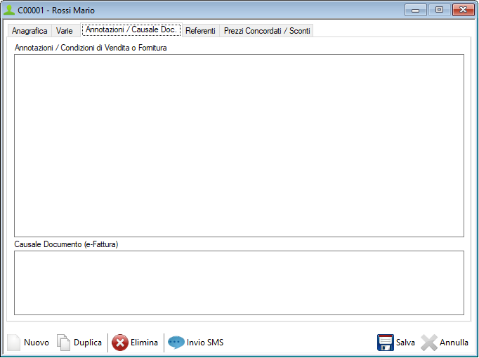 Testo descrittivo dove è possibile inserire una descrizione libera sulle condizioni di vendita riservate al cliente o semplicemente delle annotazioni.