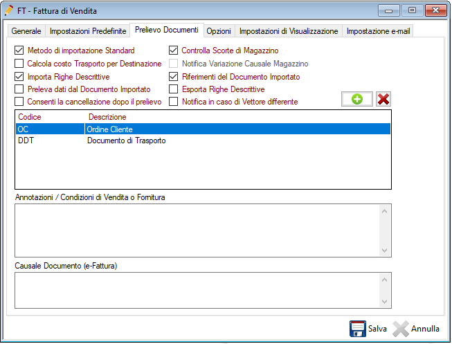 Se attivo rende disponibile all'importazione anche le righe descrittive del documento selezionato. In caso contrario mostrerà solo le righe degli articoli.