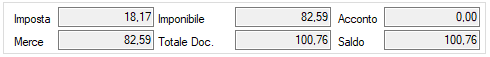 La somma dei valori imponibili presenti nelle righe del documento e in tutte le spese accessorie del documento (Trasporto, Imballaggio, Varie). - Totale Imposta