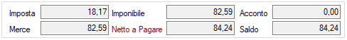 Rappresenta il totale del documento che corrisponde al totale dell'imponibile sommato al totale dell'imposta. Se sono applicate delle ritenute, dal totale sarà detratto il relativo valore e di conseguenza sarà mostrato il Netto a Pagare.