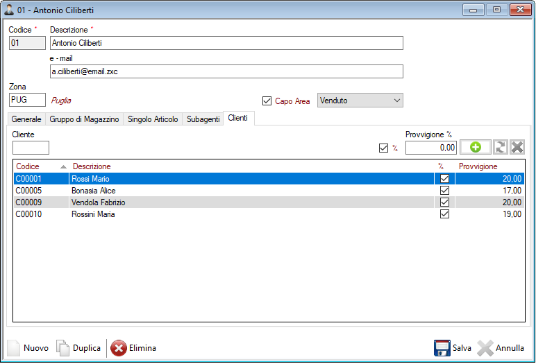 Allo stesso modo possiamo definire una provvigione diversa sul totale documento per ogni singolo cliente.