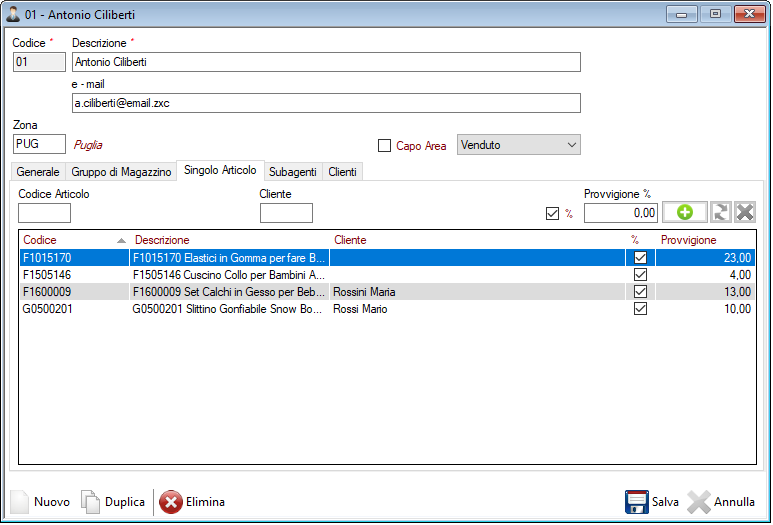Provvigioni per singolo Articolo