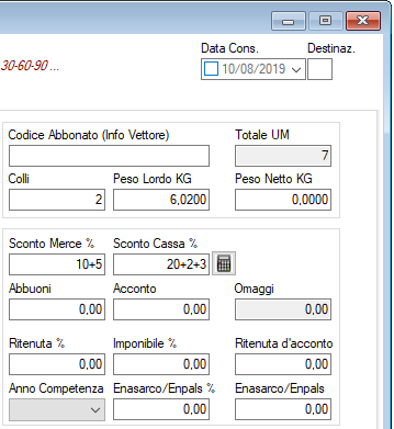 Applica uno sconto sul totale merce ovvero la somma dei prodotti presenti nel corpo del documento. - Sconto Cassa %