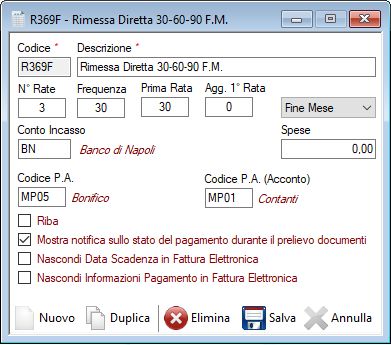 Menù Anagrafiche > Tabelle Generali > Tipo Pagamento